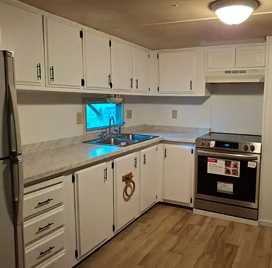 We used landscaping timber to give the skirting more stability, as well as a more finished look.